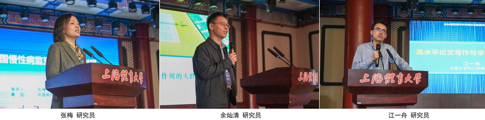 专题报告环节分两个阶段进行。第一阶段由吴坚主任主持,中国疾控中心慢病中心慢病危险因素监测室张梅研究员,北京大学公共卫生学院流行病与卫生统计学系余灿清研究员,国家杰出青年科学基金获得者、复旦大学附属肿瘤医院江一舟研究员,分别就“中国慢性病监测与大数据利用”“体力活动的人群队列研究证据”“高水平论文写作与审稿的3个问题”进行专题探讨。