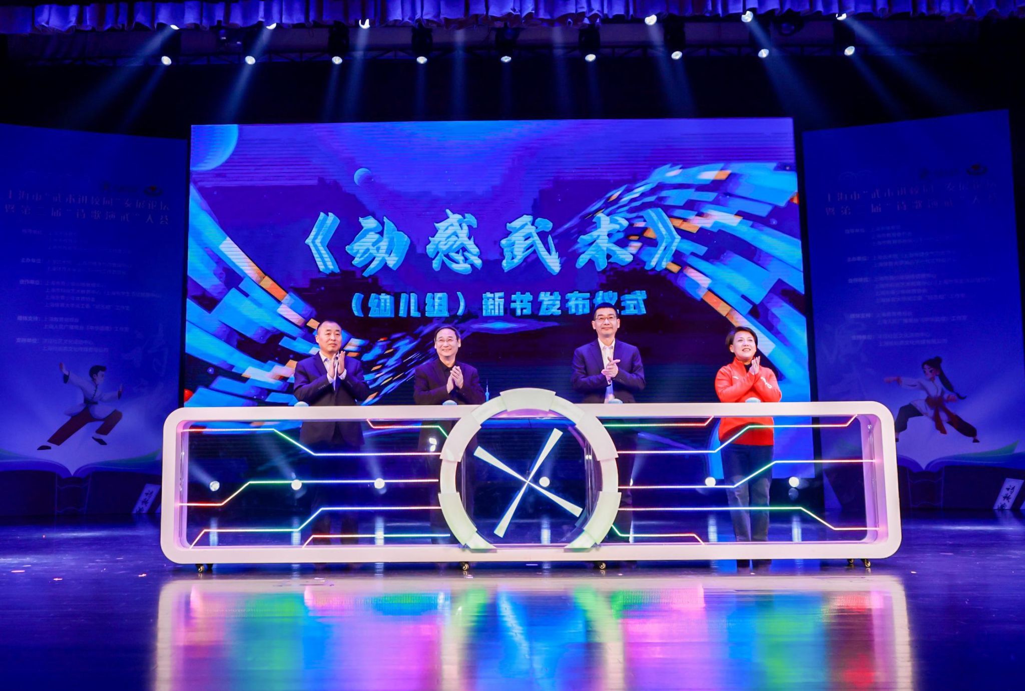活动现场,与会领导共同发布《动感武术(幼儿)》新书。继《动感武术(小学)》于2023年公开出版之后,今年正式推出《动感武术(幼儿)》一书,旨在将武术项目推向更广泛人群,吸引更多学龄前儿童加入到武术运动的行列中来。