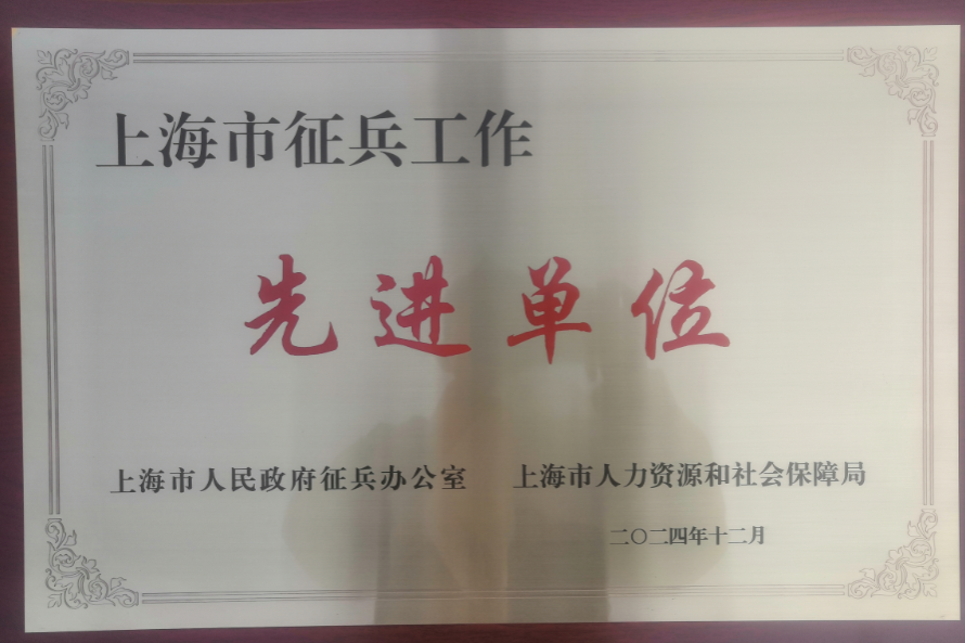 本网讯 近日,上海市人民政府征兵办公室、上海市人力资源和社会保障局联合发布了关于评选表彰上海市征兵工作先进单位和先进个人的通知。经过严格评选,永利3544am登录官网征兵工作站凭借其出色的征兵工作表现,荣获“上海市征兵工作先进单位”称号。