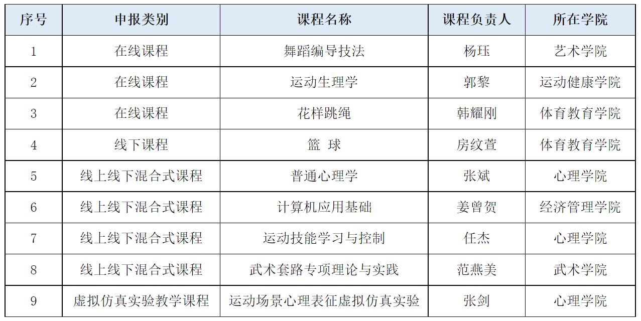 近年来,学校高度重视本科教育的内涵建设和高质量发展,在教育专项经费和地方高水平建设经费中加大本科教育的投入力度,重点支持各类课程建设,持续提升教师教学能力,加快体育特色教材出版,全面推进信息技术与教育教学的深度融合,推进线上课程、虚拟仿真课程等数字化教学资源建设,打造了一批以服务国家战略、对接健康中国、体育强国建设纲要为目标,充分发挥体育在推动经济转型升级、增强国家凝聚力和文化竞争力等方面的独特作用的体育特色一流课程。